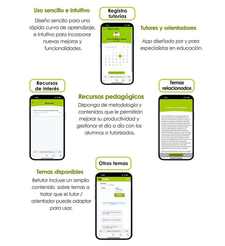 Betutor es el app que incorpora guías de orientación académica, apoyo emocional y motivacional, adaptables a cada entidad, siguiendo metodologías conocidas para su correcto despliegue y uso.
